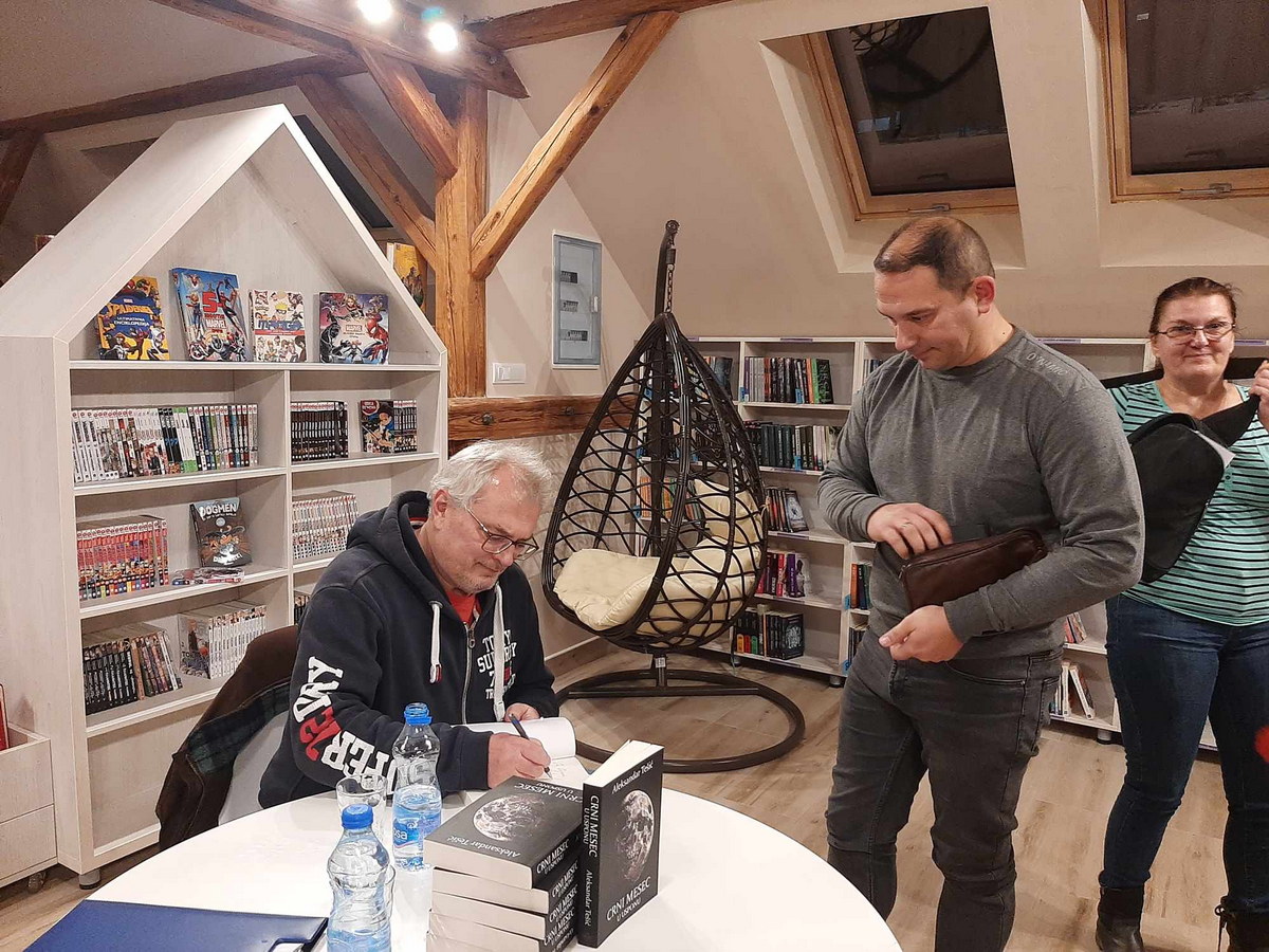 Александар Тешић који је популарност стекао серијалом епске фантастике „Косингас“ представио је и свој нови роман „Црни месец у успону“. Роман је мешавина крими-приче и трилера са елементима натприродне страве. Инспирисан је актуелним друштвено-политичким токовима у Србији, у којима мало места преостаје за питања екологије и очувања природе, и говори о застрашујућим догађајима који су уследили након што је највећа светска рударска компанија стигла на Хомоље у потрази за богатим налазиштима злата.